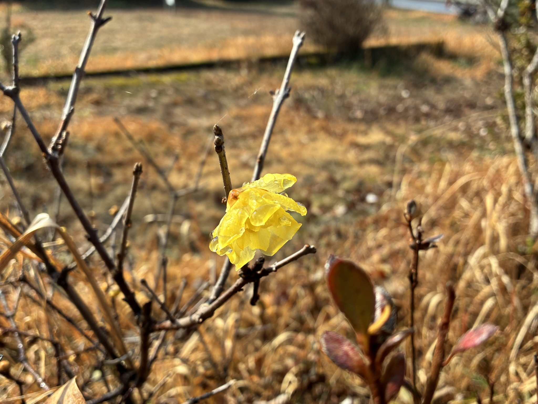 庭の植物の写真を撮る。透き通った黄色の蝋梅が咲き始めていた。濃いピンク色のさざんかは散りかけ。水仙は花が重かったのか茎が折れている。畑のチマサンチュは、寒さからか紅葉みたいに真っ赤な色をしている。ほとけのざのつぼみを見つけて、春が近付いているのが分かって嬉しくなった。