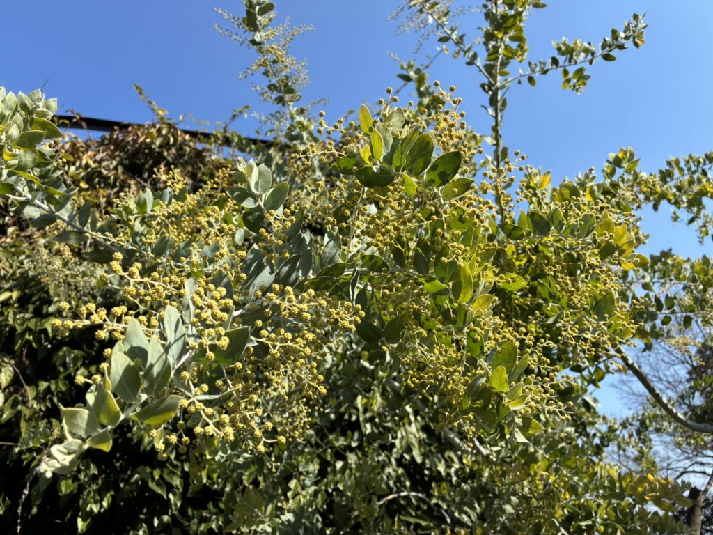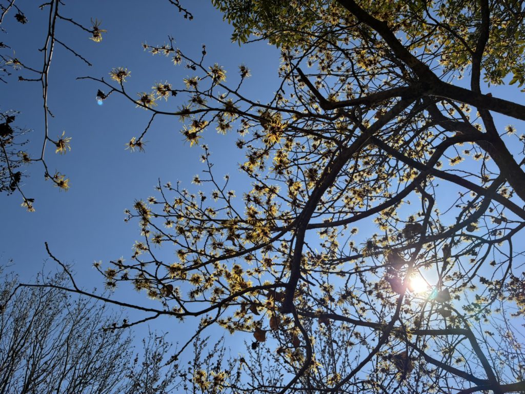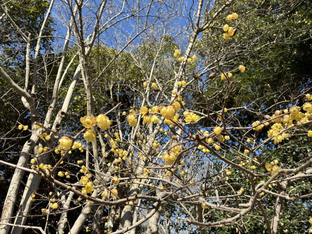 なんか蝋梅っぽい甘い香りがするな~と思って顔を上げたら咲いてた(ソシンロウバイ)