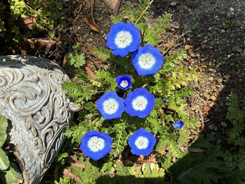 花びらだけ彩度いじったのかなってくらい鮮やかなブルーのネモフィラ