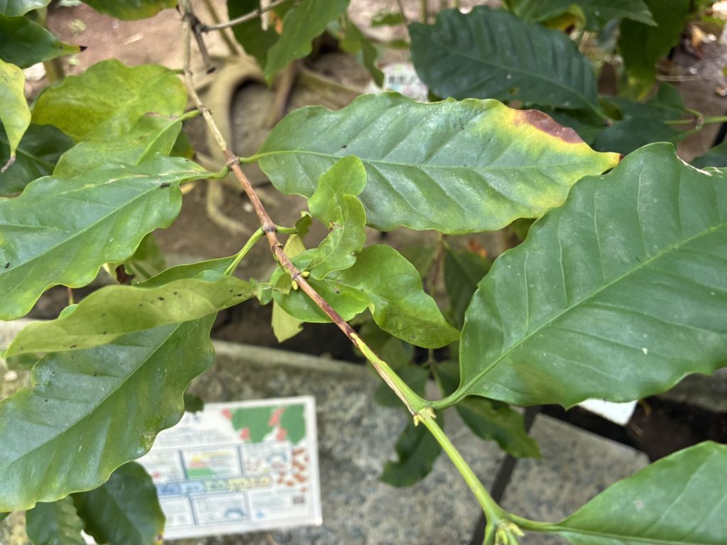 見上げるような高さのコーヒーノキにつぼみがついており興奮 咲いたら香りがすごそう