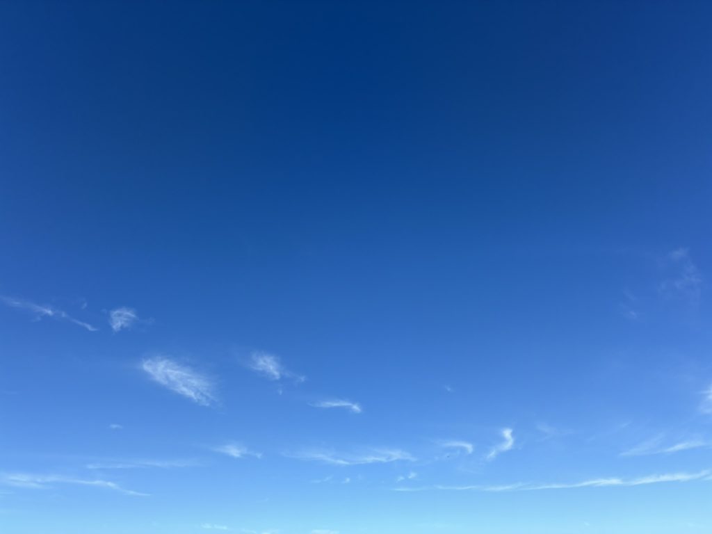 雲ひとつない青空。とても清々しくてきれいな青だったので写真を撮ったら、証明写真の背景みたいになってしまった。